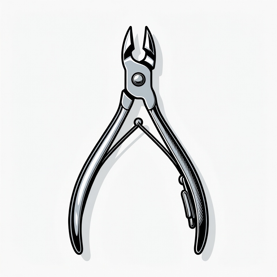 clipart, clippers, grooming, handles, hygiene tool, illustration, isolated background, line art, manicure tool, metal tool, nail cutters, pedicure tool, pointed blades, silver clippers, nail clippers
