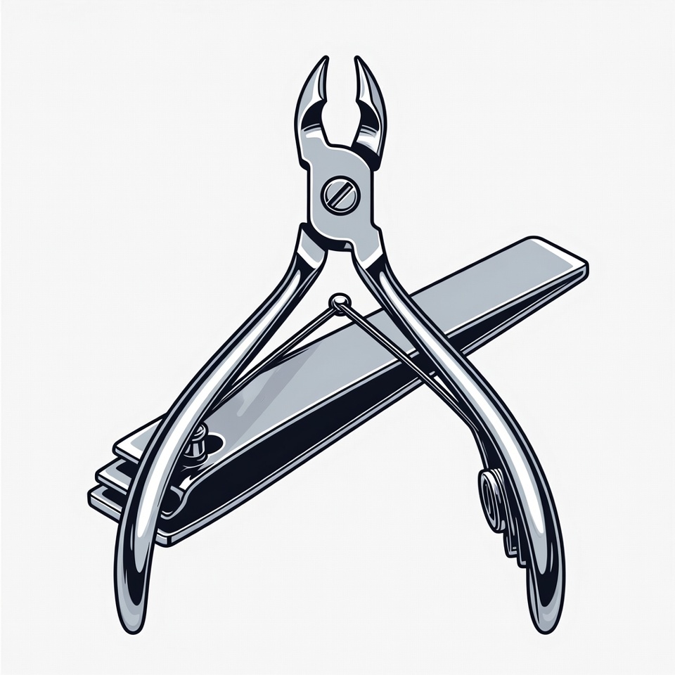 clipart, clippers, fingernail trimmer, grooming, hand tool, hygiene, isolated background, manicure tool, nail cutter, pedicure, personal care, silver metal, toenail clippers, vector illustration, nail clippers