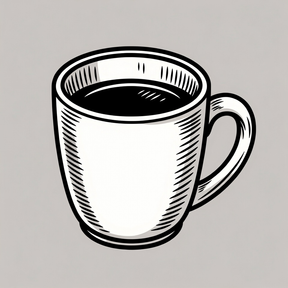 black coffee, ceramic mug, clipart, coffee cup, hand drawn, hot beverage, illustration, isolated background, line art, mug handle, sketch style, steaming coffee, white mug, coffee mug