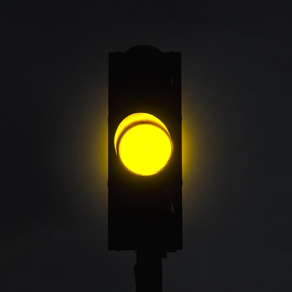 caution light, dark background, glowing yellow, isolated background, nighttime, road sign, signal light, stoplight, traffic signal, yellow light, yellow signal, traffic light