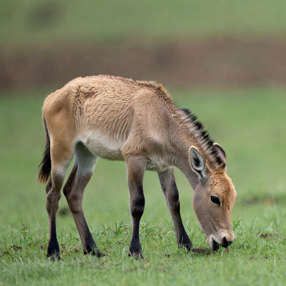 animal, antelope calf, baby saiga, big ears, field, grass, grazing, green grass, horns, isolated background, light brown fur, mammal, nature, outdoors, steppe animal, wildlife, young antelope, saiga antelope