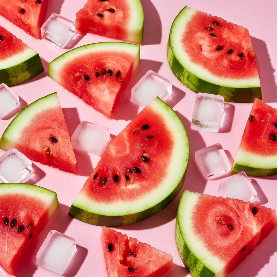 Watermelon Slices with Ice Cubes