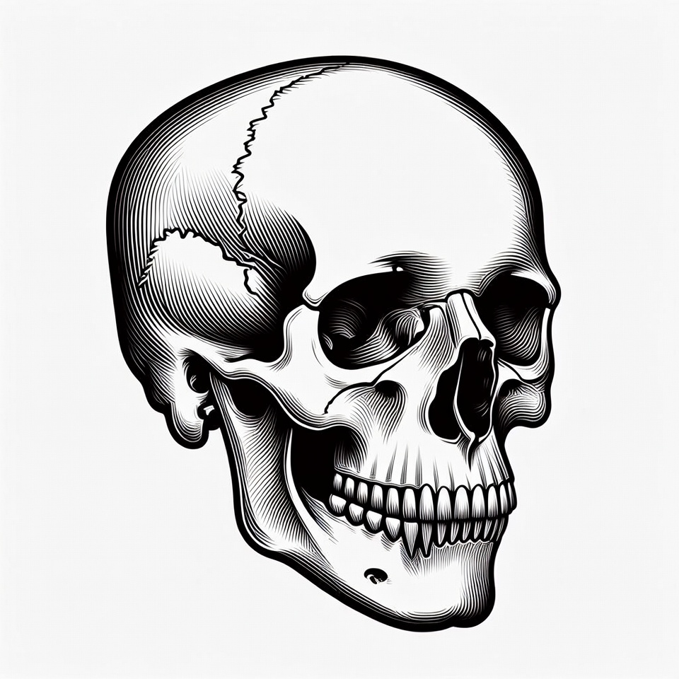 Black and white skull illustration