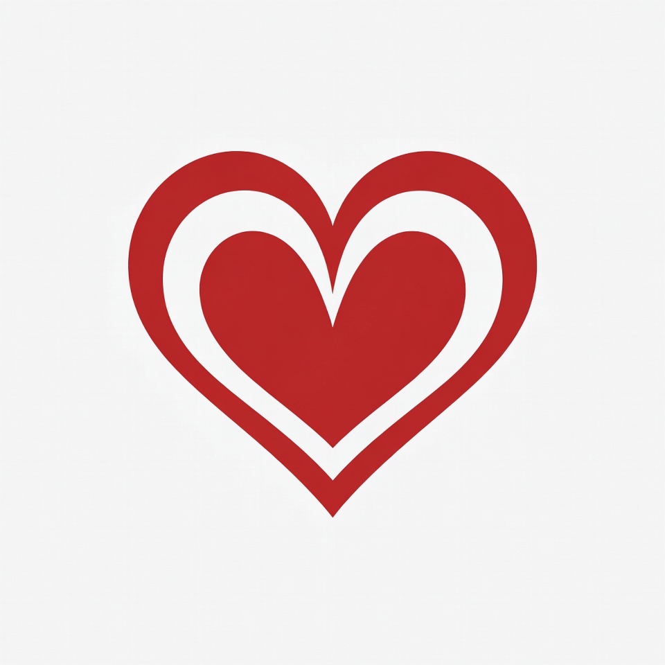 A bold red heart symbol with thick white outlines is centered on a plain white background. The design features multiple layered outlines creating a striking, simple graphic. It appears as a vector-style clipart illustration.