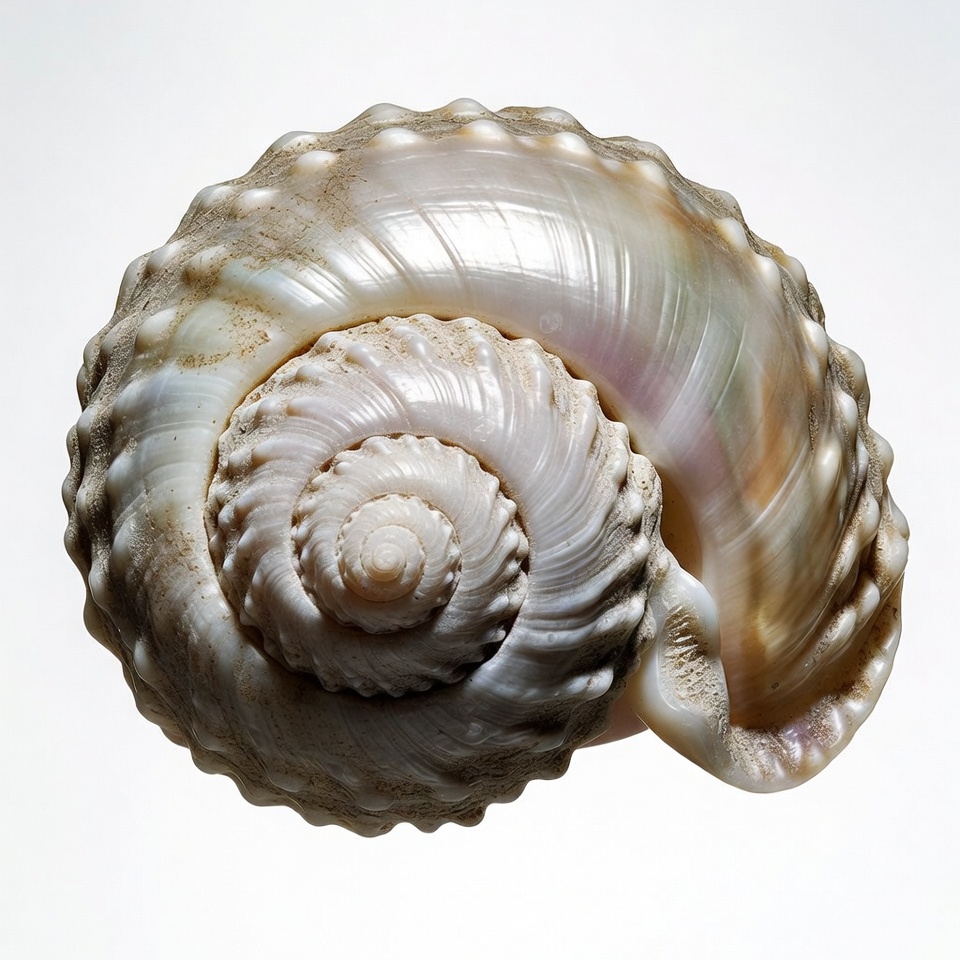 beach shell, bumpy shell, coiled shell, conch shell, isolated, marine shell, nautilus, ocean shell, pearlescent shell, sea shell, shell, spiral shell, textured shell, white background, seashell