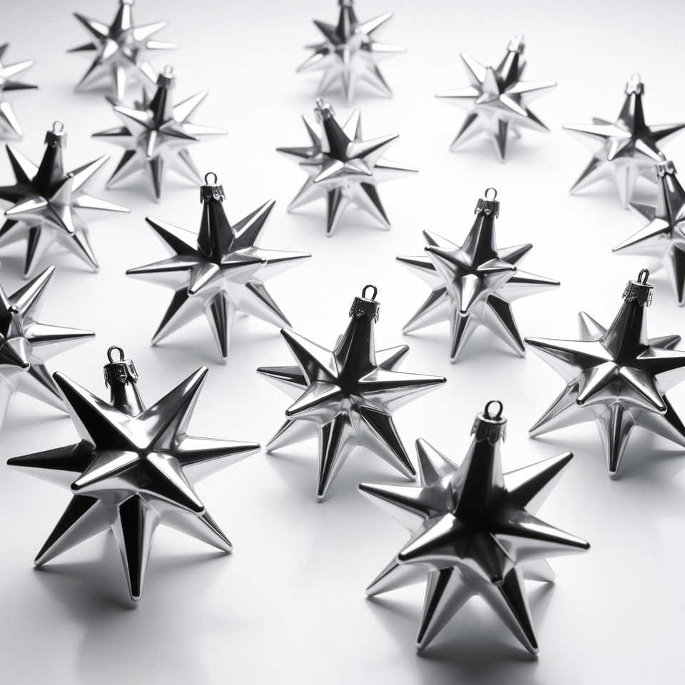 Shiny Silver Star Christmas Ornaments