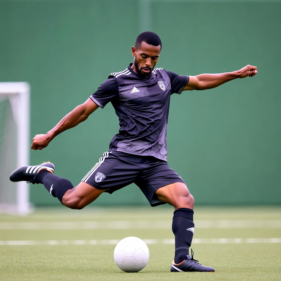 Black man kicking soccer ball