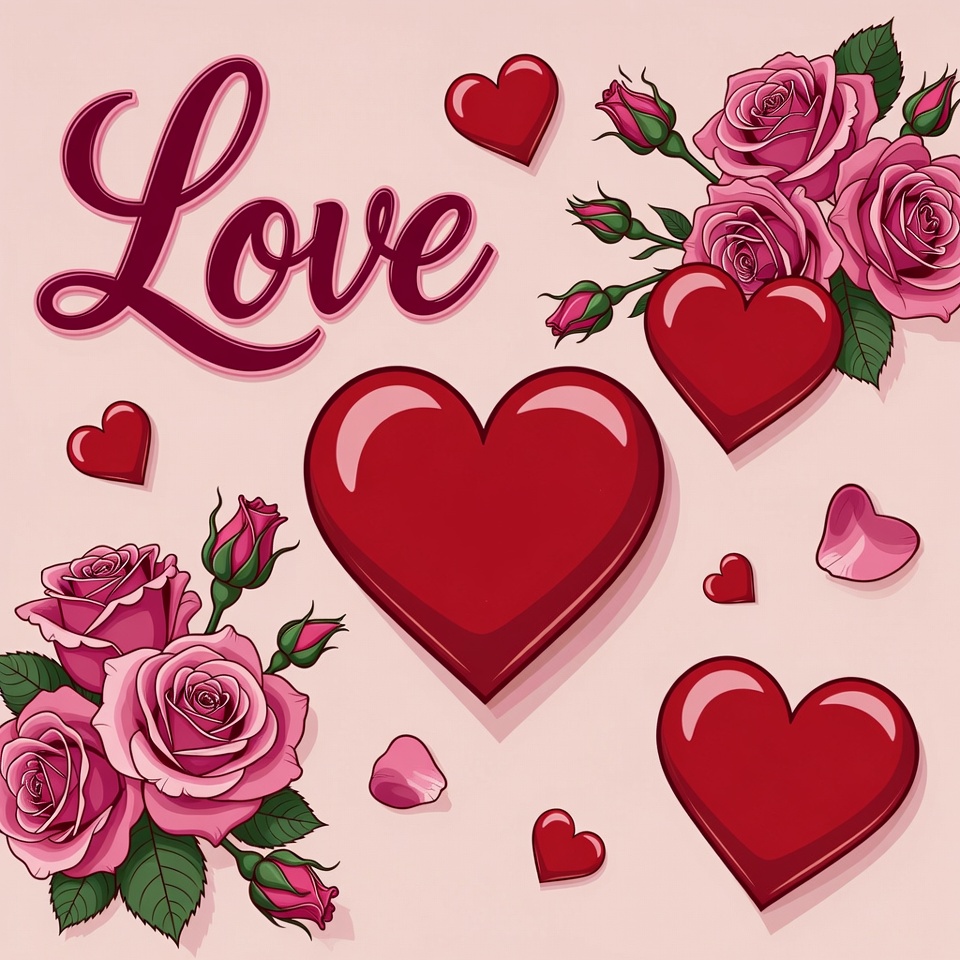 Love Text with Hearts and Roses