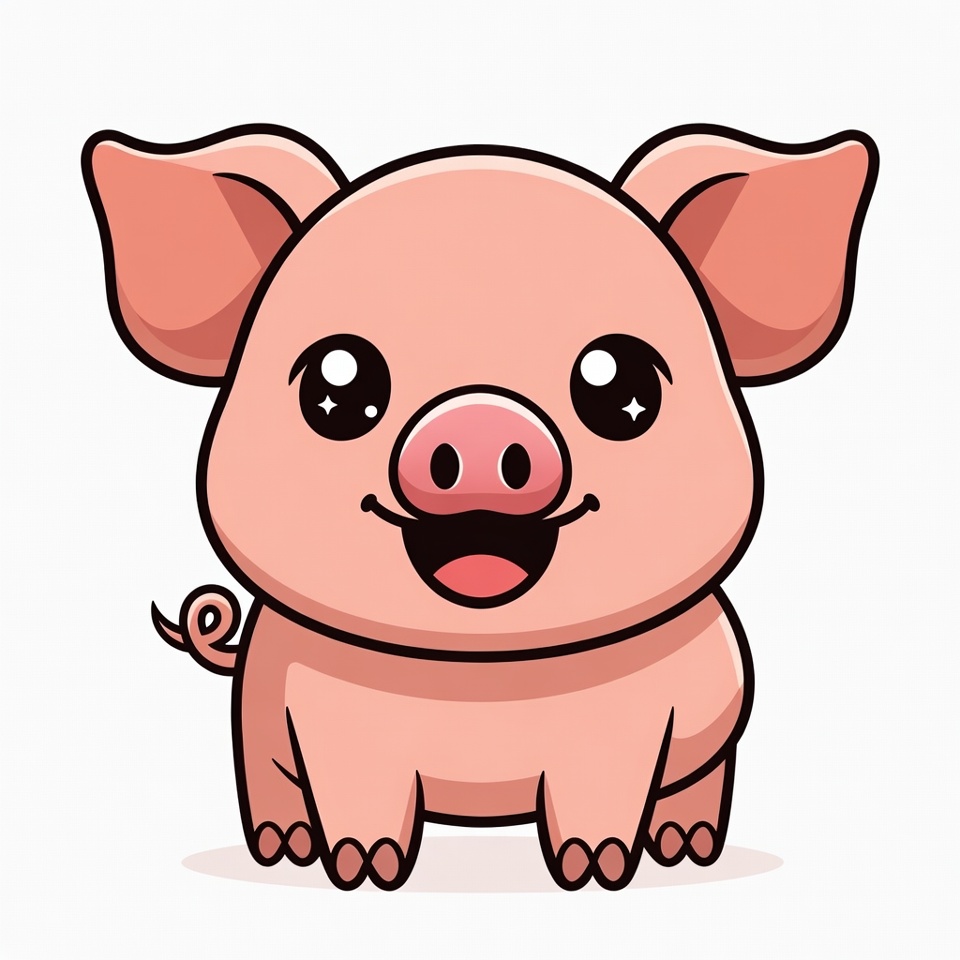 adorable pig, animal illustration, big eyes, cartoon pig, chibi pig, clipart pig, curly tail, farm animal, floppy ears, happy pig, isolated background, kawaii pig, pig cartoon, pig illustration, pink pig, smiling pig, cute pig