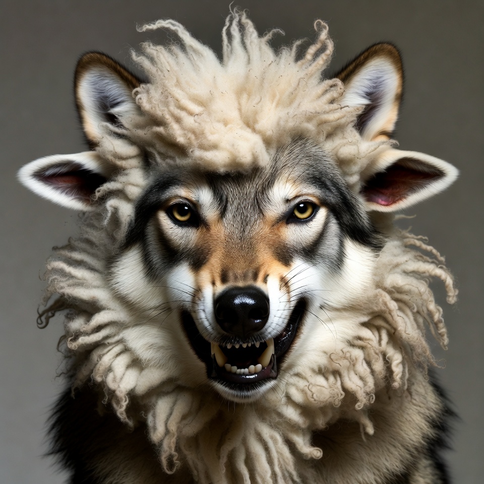 animal closeup, animal portrait, canine, curly fur, fierce wolf, fluffy wolf, fur texture, growling wolf, isolated background, sharp teeth, sheep fur, snarling, white fur, wild animal, wolf face, yellow eyes, wolf