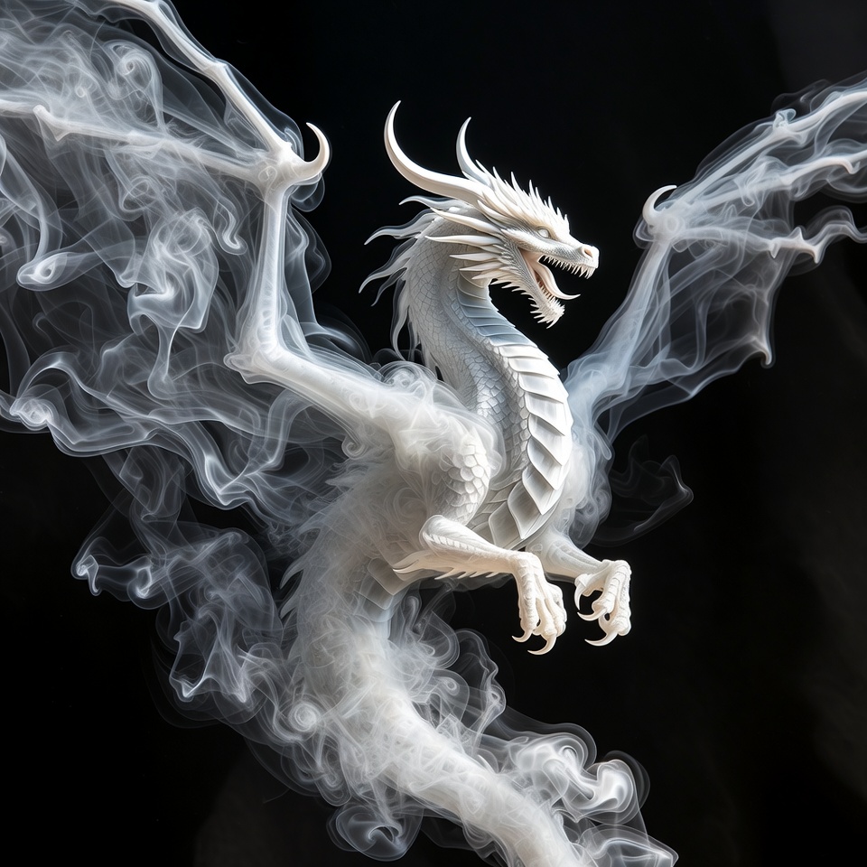 White Dragon with Smoke Wings