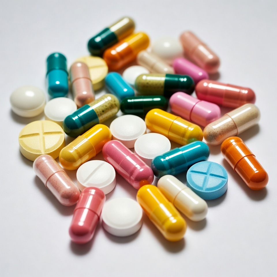 assorted pills, blue pills, capsules, colorful pills, drug pile, green capsules, isolated background, medication, medicine, orange capsules, pharmaceutical, pharmacy, pink pills, prescription drugs, tablets, vitamins, white background, white pills, yellow tablets, pills