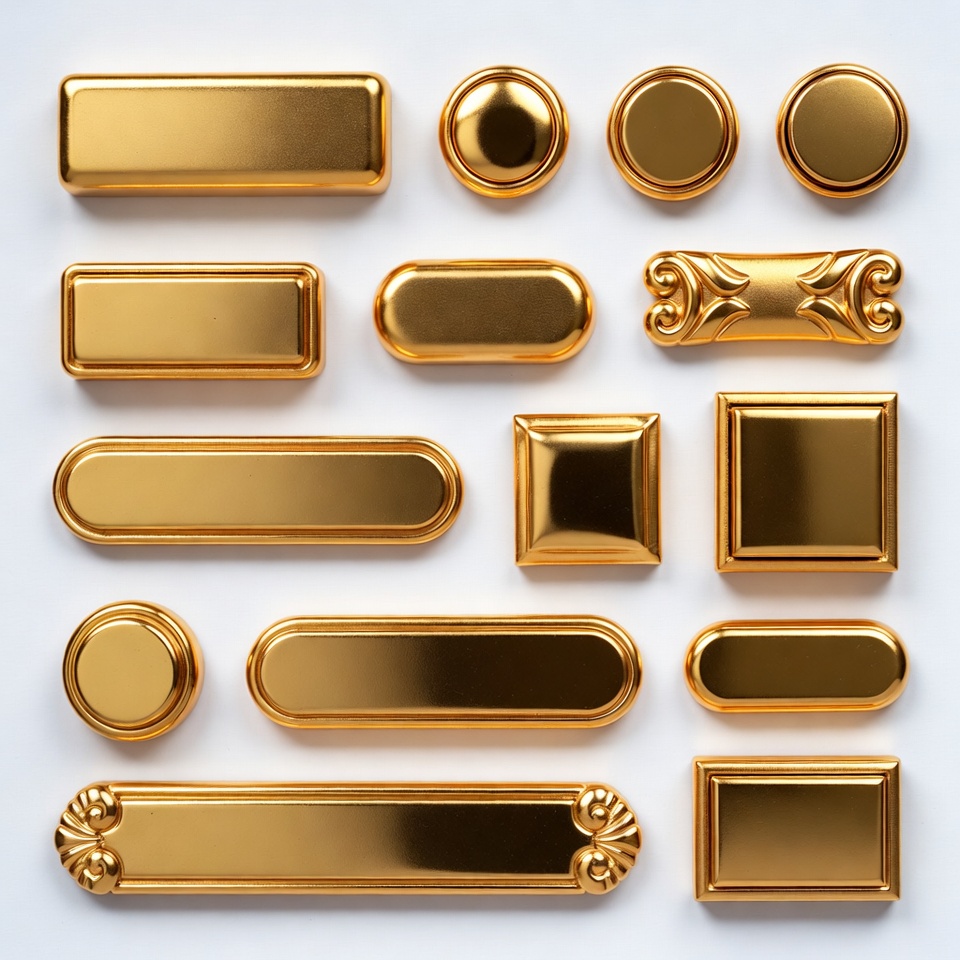 3D buttons, UI buttons, button collection, decorative buttons, gold badge, gold elements, gold labels, graphic design, isolated background, label design, luxury gold, metallic buttons, ornate gold, oval button, polished metal, rectangular button, round button, shiny gold, square button, web buttons, white background, gold buttons