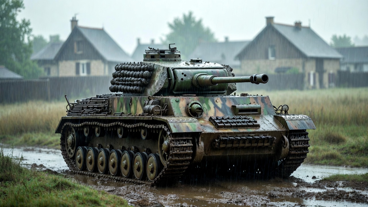 Panzer IV tank in muddy field