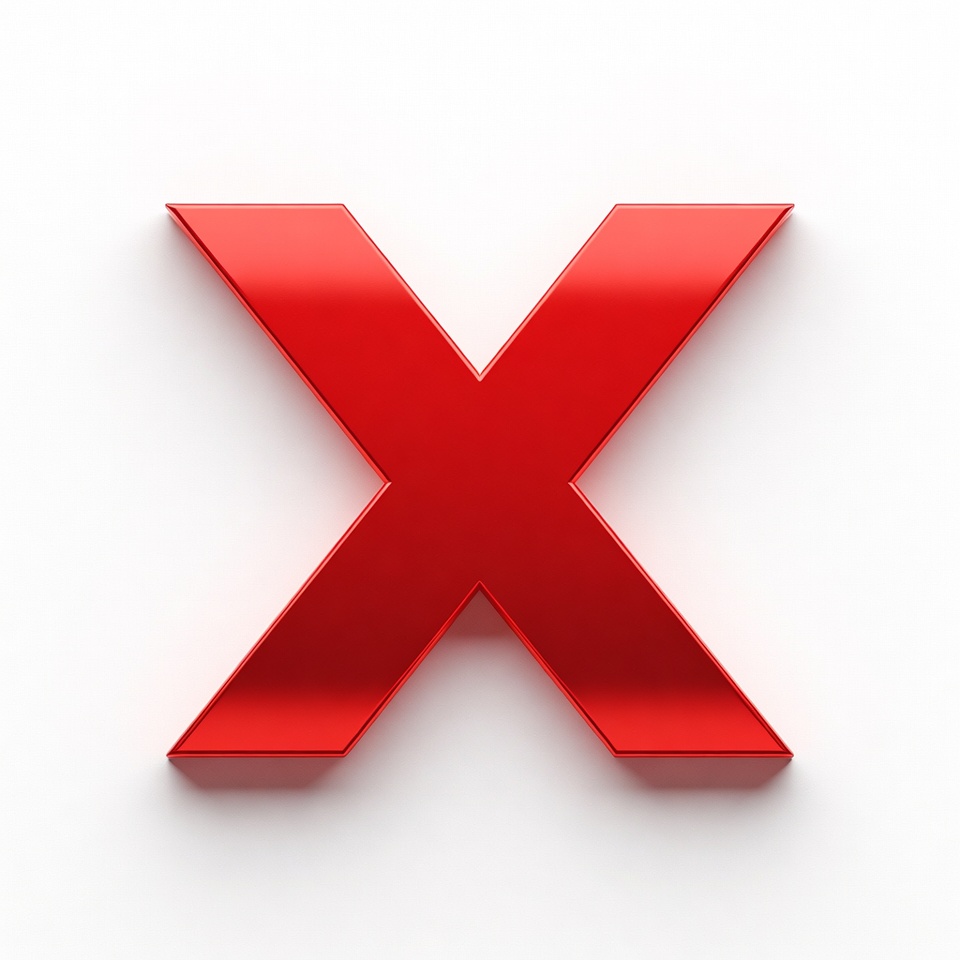 3D X, X symbol, bold X, clipart, cross symbol, graphic symbol, isolated background, metallic X, red cross, red symbol, shiny red, vector graphic, white background, red X