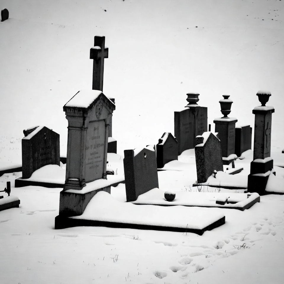 Snowy Cemetery with Gravestones
