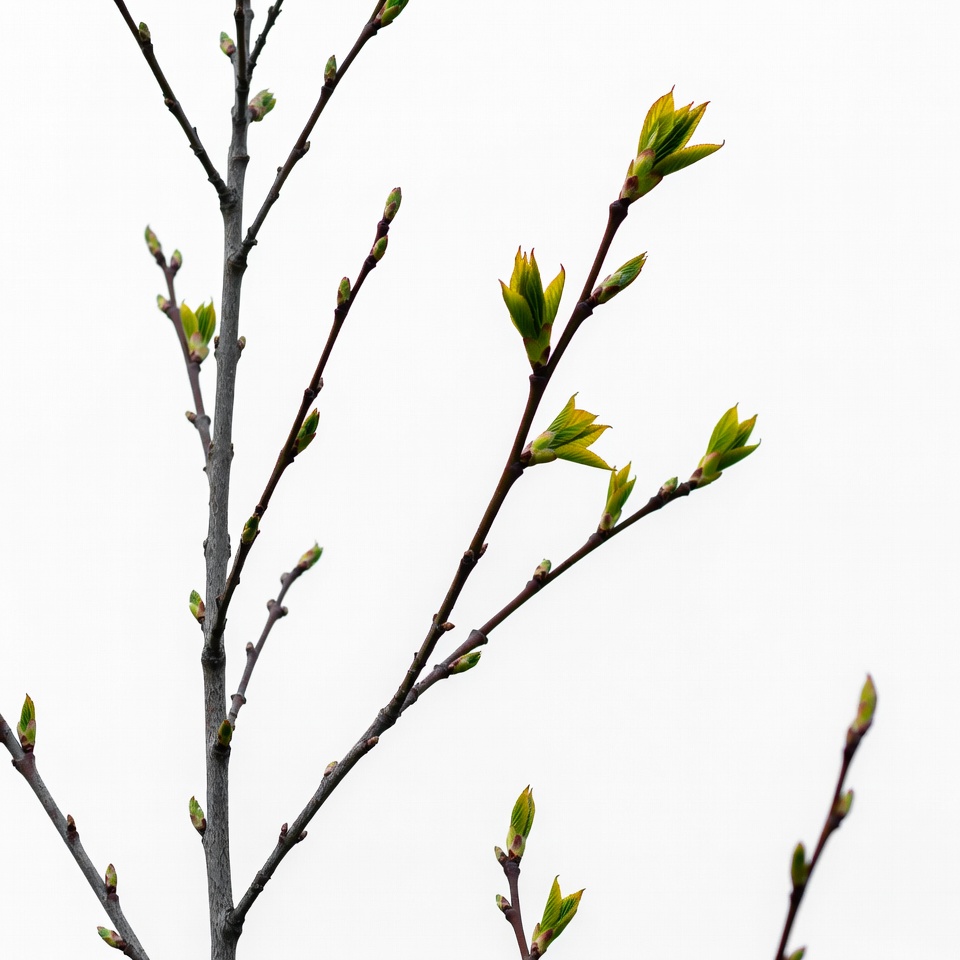 branches, buds, fresh buds, green buds, growth, isolated background, leaves, nature, plant, spring buds, spring growth, twigs, white background, yellow buds, tree branch