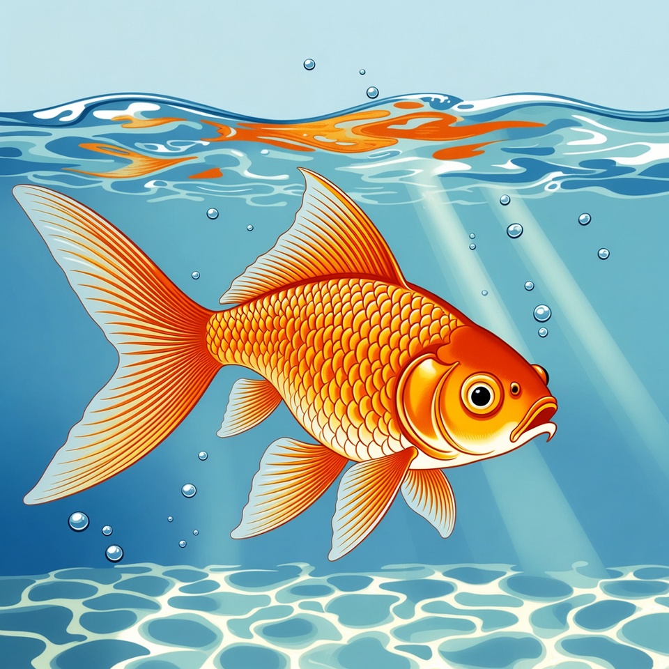 Goldfish swimming underwater illustration