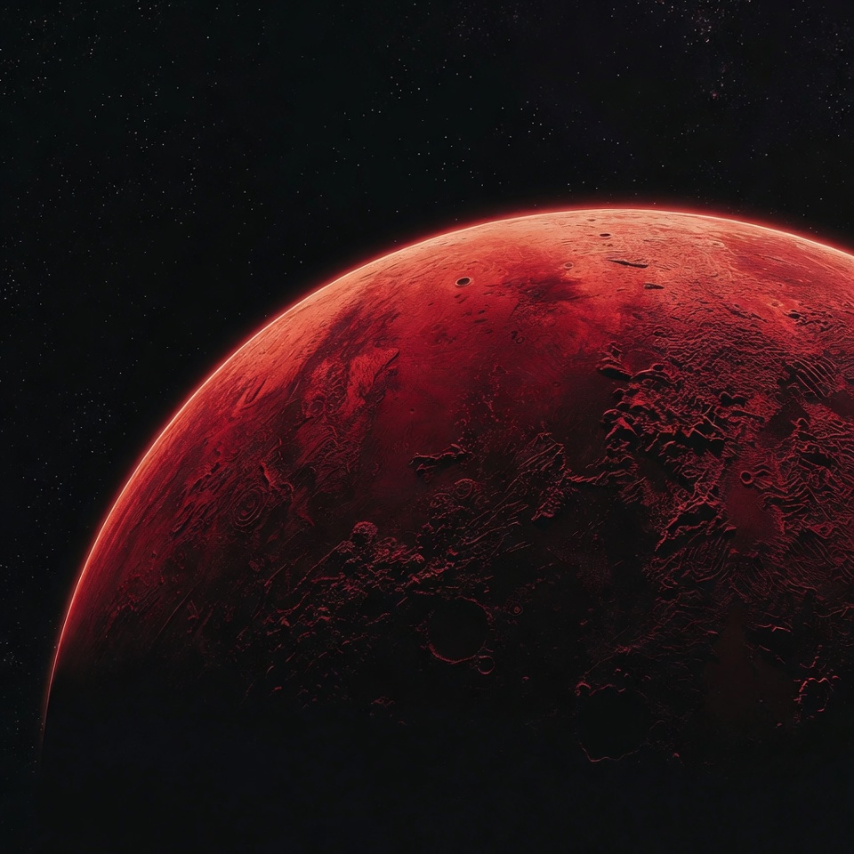 astronomy, black background, celestial body, cosmos, craters, digital art, galaxy, illustration, isolated, orbit, planet, red planet, sci-fi, solar system, space, stars, surface, universe, Mars