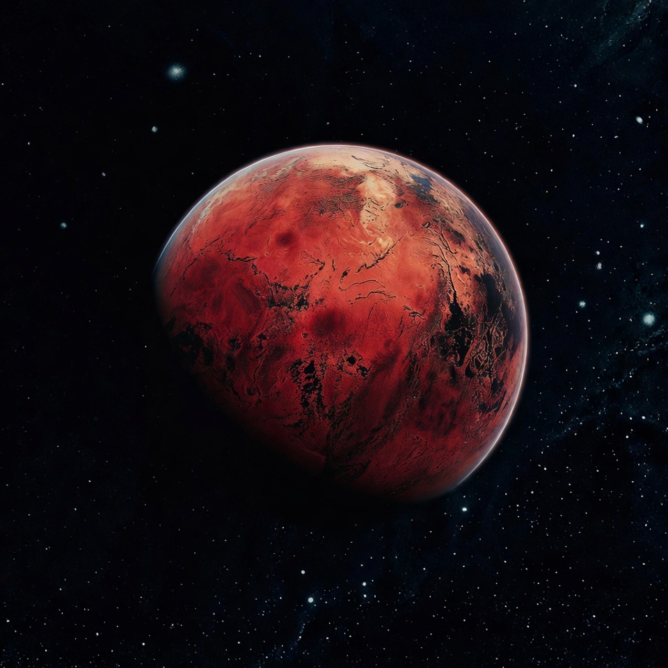 astronomy, astrophysics, celestial body, cosmos, digital art, exploration, galaxy, illustration, nebula, orbit, outer space, planet, red planet, sci-fi, solar system, space, stars, universe, Mars