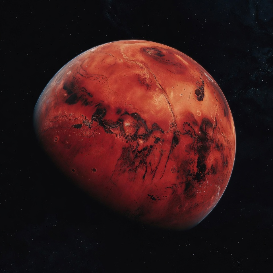 astronomy, canyons, celestial body, cosmos, craters, digital art, galaxy, isolated background, outer space, planet, realistic, red planet, sci-fi, solar system, space, stars, surface, universe, Mars