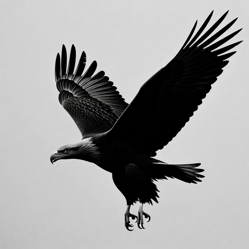 animal, avian, beak, bird, black and white, clipart, eagle flying, eagle silhouette, eagle wings, feathers, illustration, isolated background, majestic eagle, nature, predatory bird, raptor, soaring eagle, talons, wildlife, bald eagle