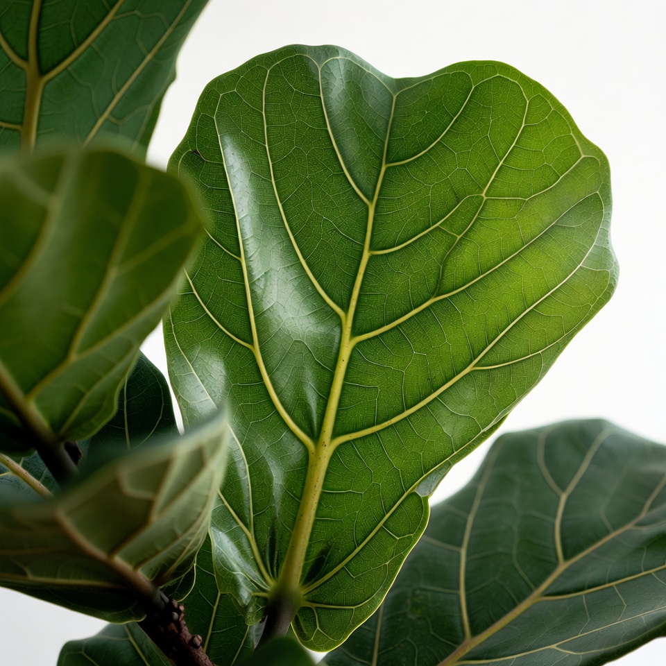 botany, closeup, fiddle leaf fig, foliage, glossy leaves, green leaves, heart shaped leaves, houseplant, indoor plant, large leaves, nature, plant leaves, tropical plant, veined leaves, vibrant green, white background, ficus lyrata