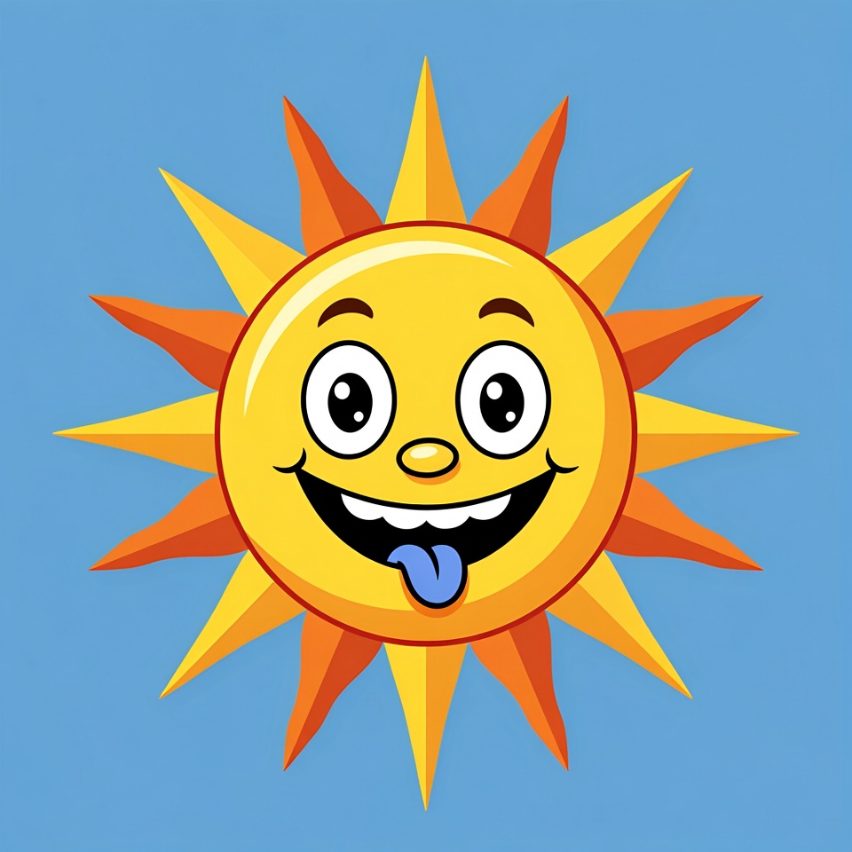 Cartoon Smiling Sun with Tongue Out