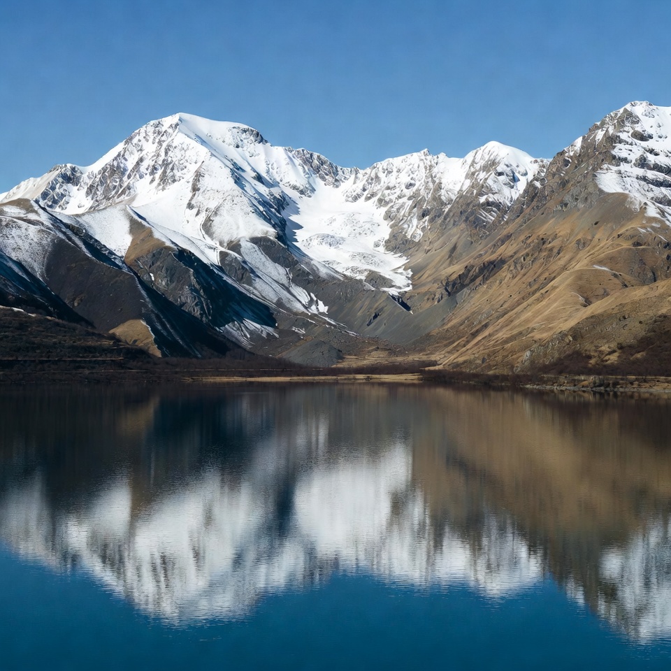 Snowy Mountains Reflecting in Lake
