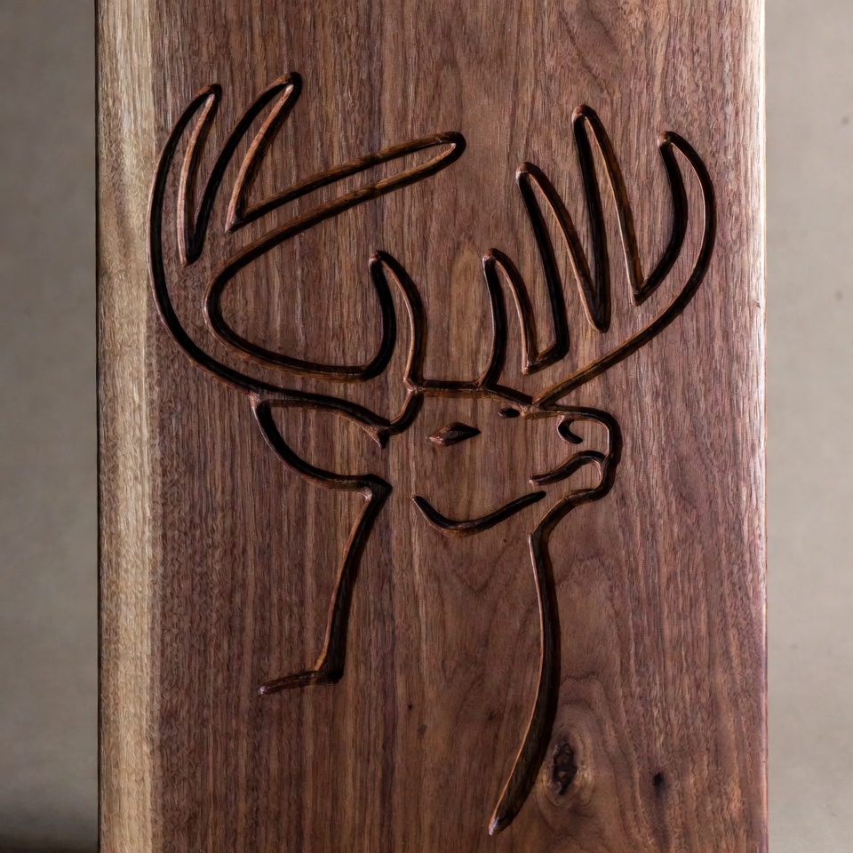 Carved Deer Head on Walnut Wood