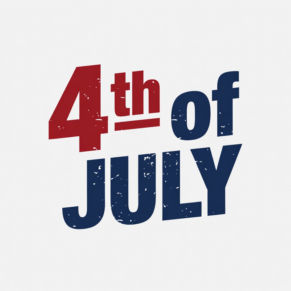 Fourth of July, Independence Day, July 4th, USA holiday, blue text, bold letters, clipart, festive text, holiday graphic, illustration, isolated background, patriotic design, red text, 4th of July