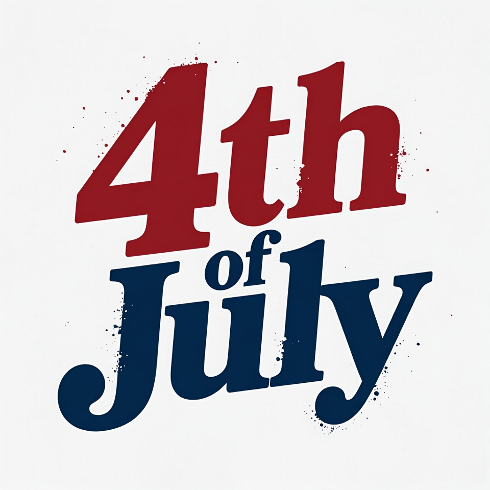 Independence Day, July 4th, USA holiday, blue text, bold letters, clipart, festive text, holiday design, illustration, patriotic graphic, red text, splatter paint, vector art, white background, 4th of July