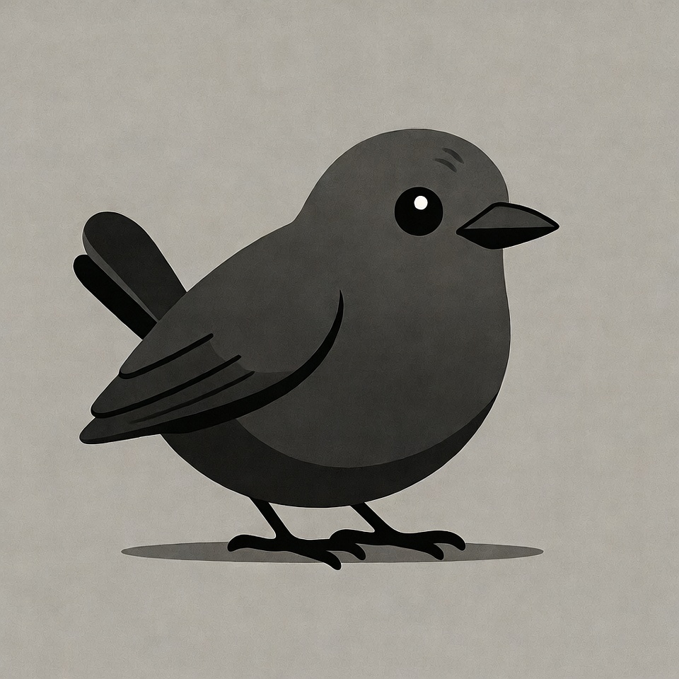 animal, beak, big eyes, bird illustration, bird standing, cartoon bird, clipart, cute bird, feathers, gray background, isolated background, simple illustration, vector bird, wings, black bird