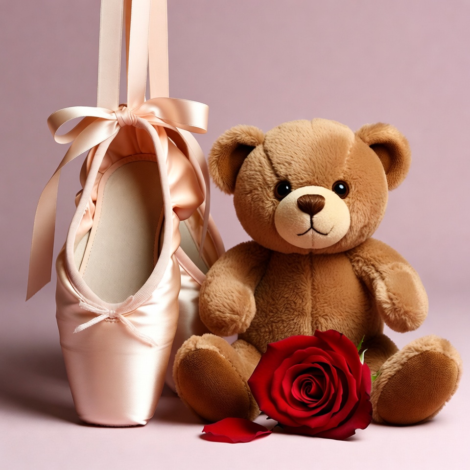 Pink Ballet Slippers with Teddy Bear and Rose