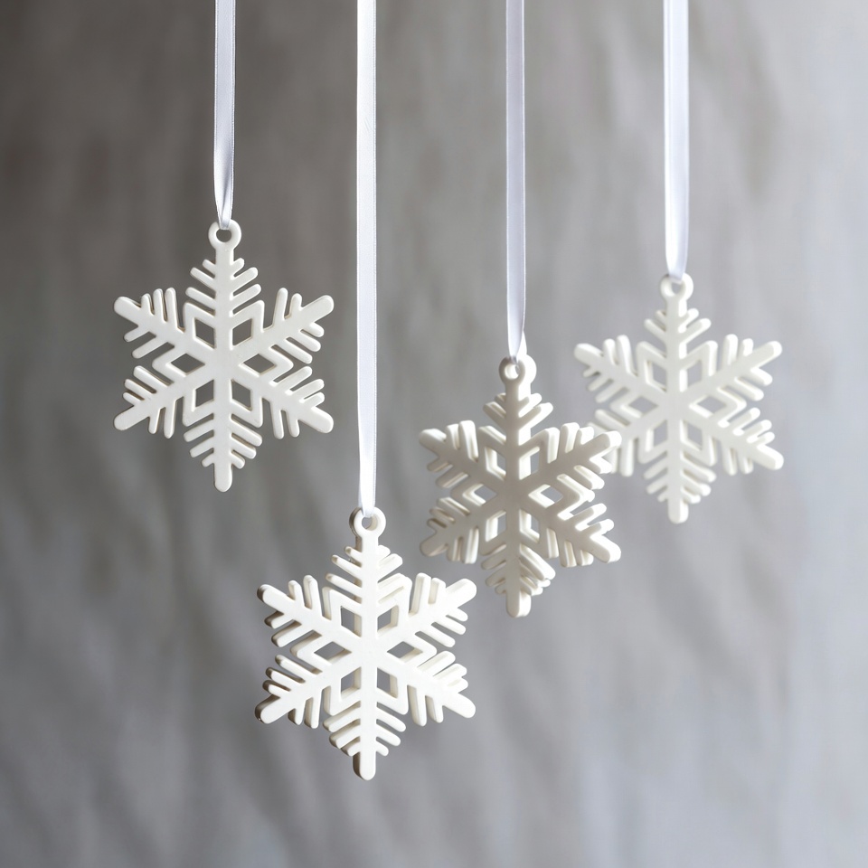White snowflake ornaments hanging