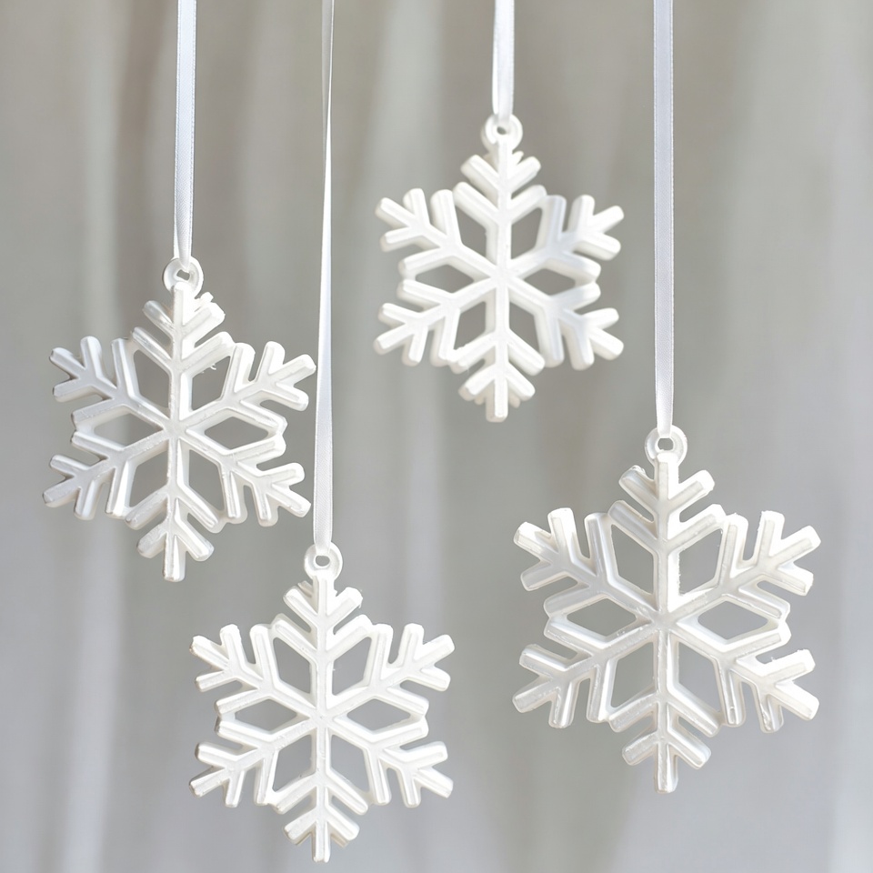 Christmas decorations, hanging ornaments, holiday decor, isolated background, ornaments, plastic snowflakes, snowflake clipart, snowflake shapes, white ribbons, white snowflakes, winter decor, snowflake