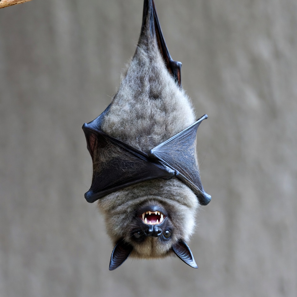 animal, bat fangs, bat wings, furry bat, gray bat, hanging bat, isolated background, mammal, nocturnal animal, snarling bat, upside down bat, wildlife, bat