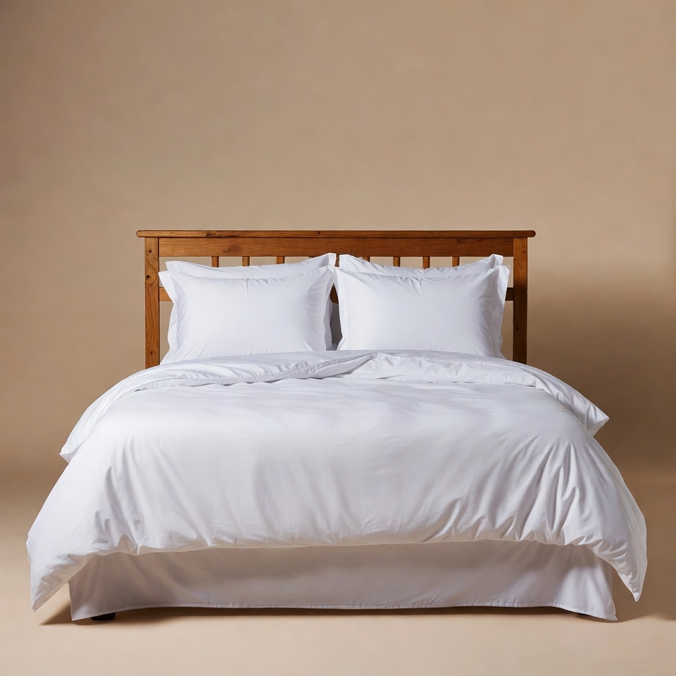 White Bedding on Wooden Bed Frame