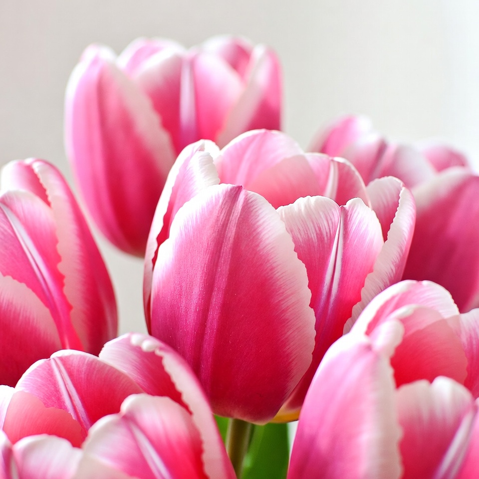 blooming tulips, bouquet, floral arrangement, flower closeup, flowers, fresh flowers, garden flowers, green stems, isolated background, pink flowers, spring flowers, tulips, white background, white edges, pink tulips