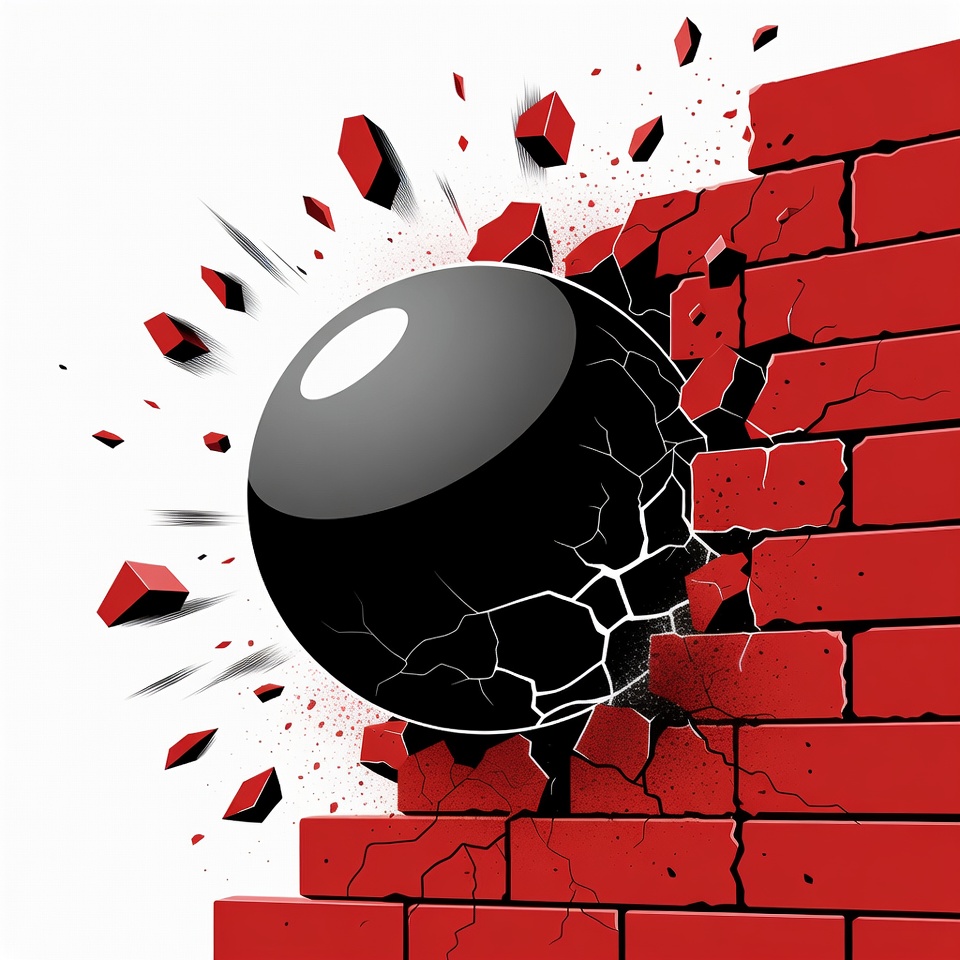 Black Cannonball Breaking Red Brick Wall