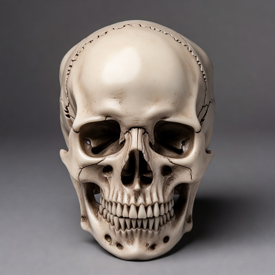 Halloween skull, anatomy, bone structure, cranium, death symbol, eye sockets, forensic skull, gray background, human bones, isolated skull, medical skull, realistic skull, skeleton, skull, teeth, white skull, human skull