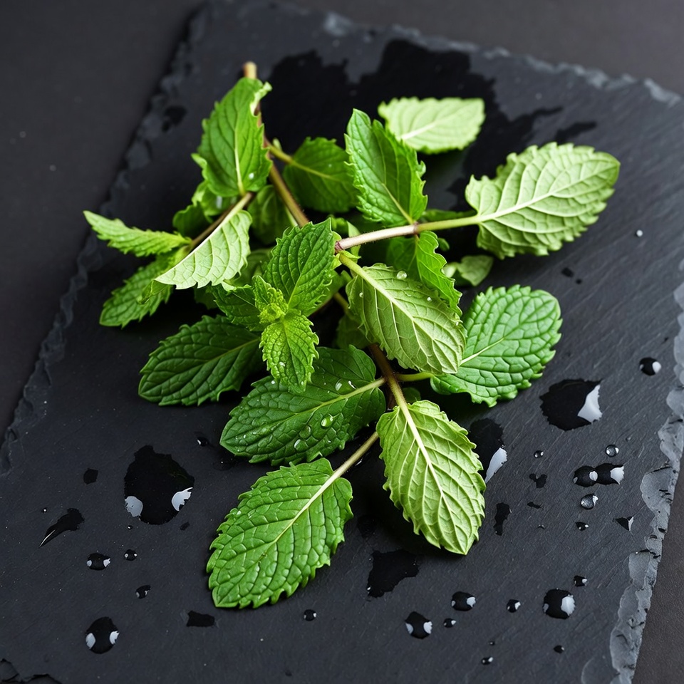 Fresh Mint Leaves on Black Slate