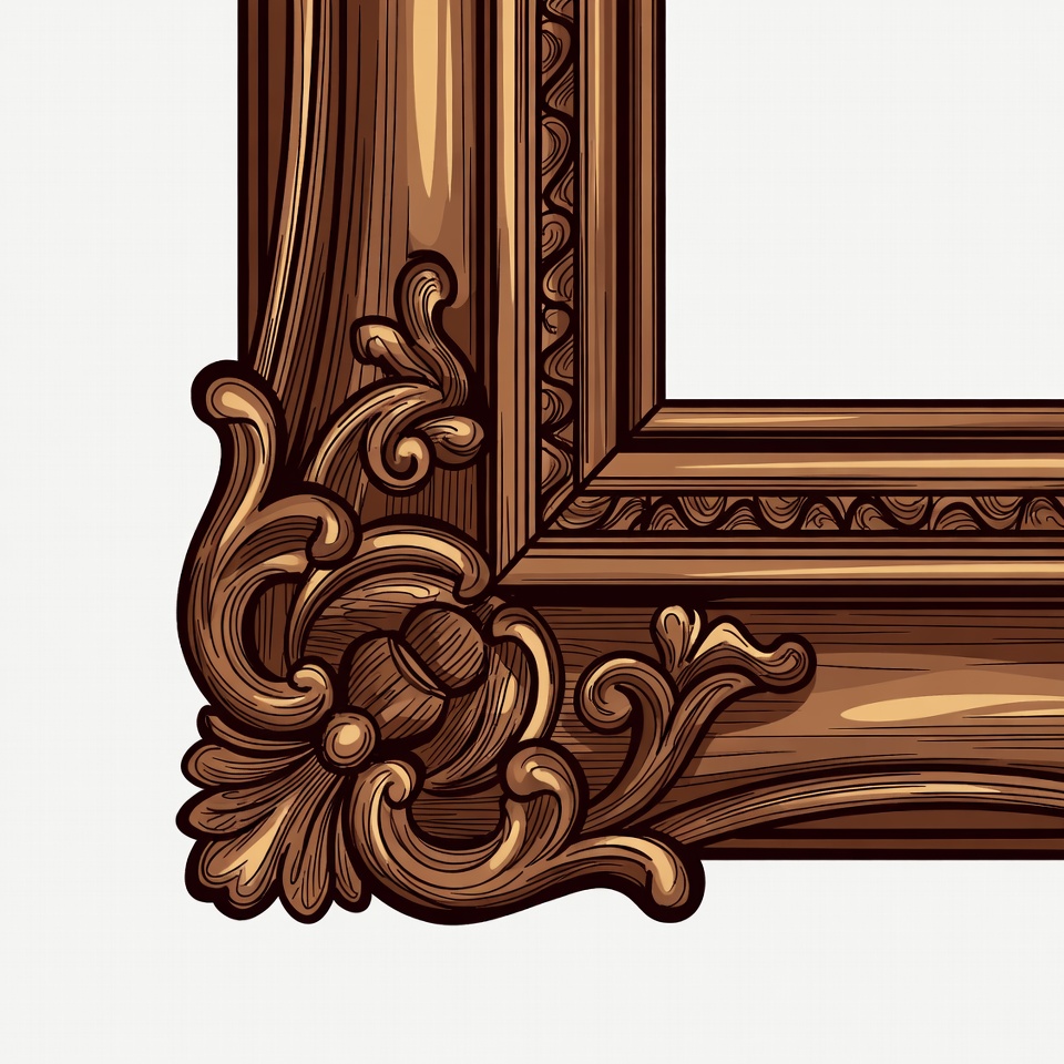 art frame, baroque frame, brown frame, carved frame, clipart, decorative frame, elegant frame, empty frame, floral motifs, frame border, gold frame, illustration, isolated background, ornate frame, photo frame, rococo frame, scrollwork, vector art, vintage frame, wooden frame, picture frame