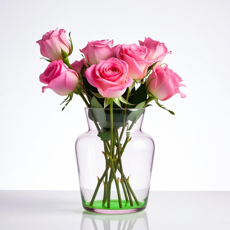 Pink Roses in Clear Vase