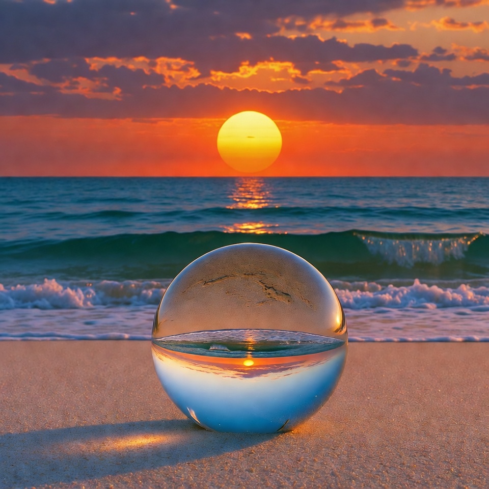 Crystal Ball Capturing Beach Sunset