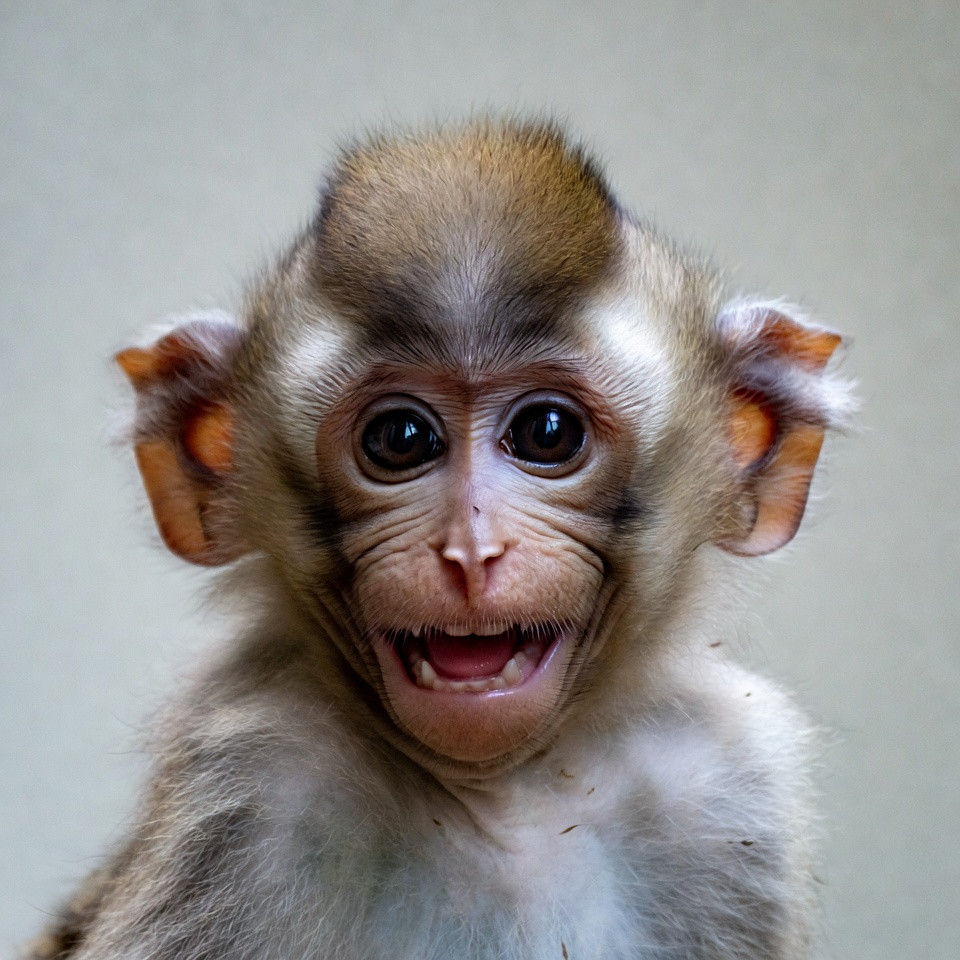 Baby macaque smiling at camera