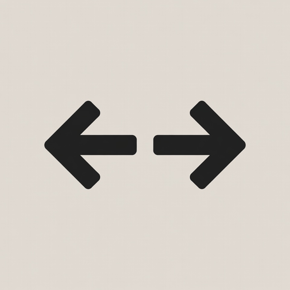 A simple black icon features two arrows facing opposite directions on a light beige background. The left arrow points left and the right arrow points right, both with clean line art style.