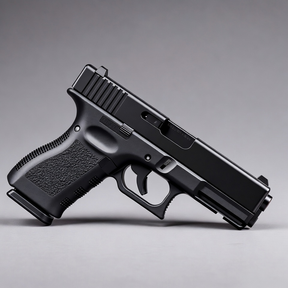 9mm pistol, black gun, black handgun, firearm, gray background, gun slide, handgun, isolated gun, pistol grip, self-defense weapon, semi-automatic, shooting gun, textured grip, weapon, Glock pistol