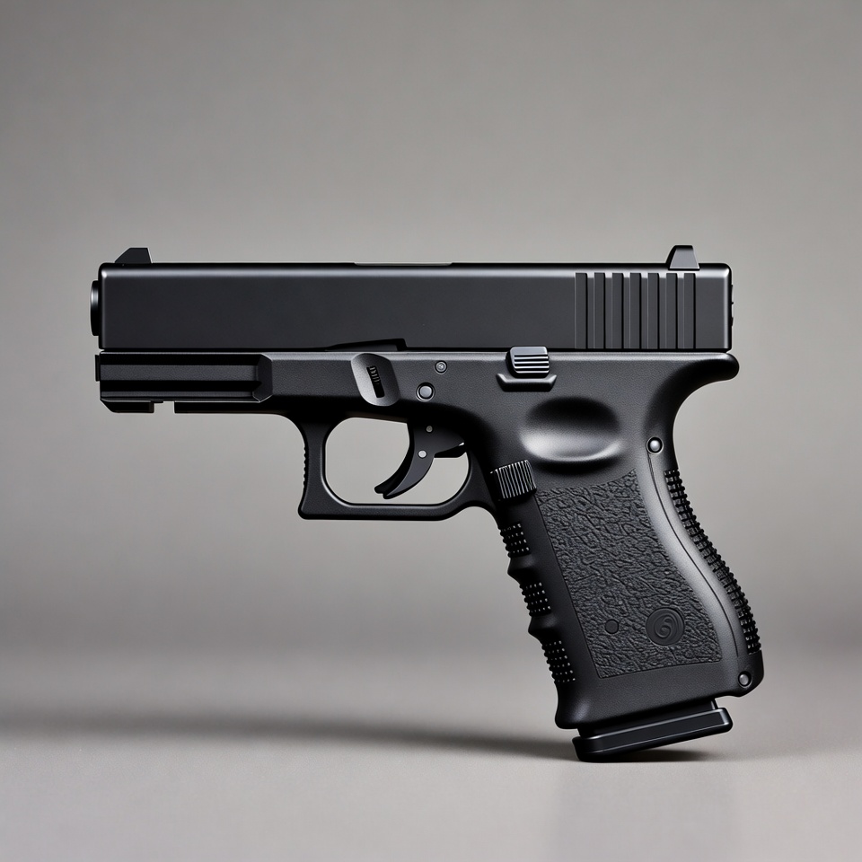 Black Glock Pistol on Gray Background