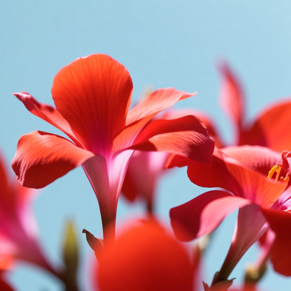 Red Geranium Flowers Against Blue Sky